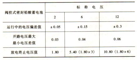 (1)閥控電池在運行中每只單體電池電壓偏差值及放電終止電壓值應符合表3-2的規定;表3-2 閥控蓄電池在運行中電壓偏差值及放電終止電壓值的規定 單位:V