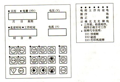 4)打印:在手動打印方式下,按一該鍵,指示燈亮后,打印機將打印一次當前充電機的工作狀況及有關(guān)參數(shù);